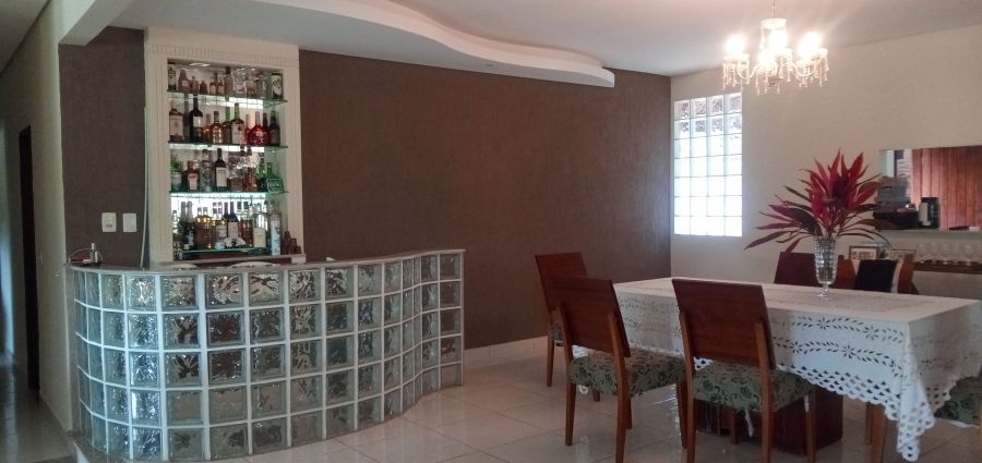 Sala de TV, sala de estar e sala de jantar com balcão de bar