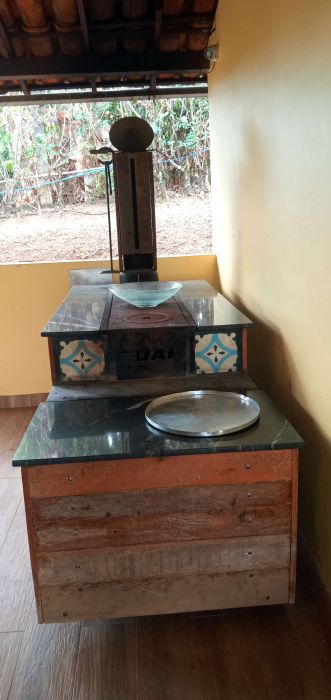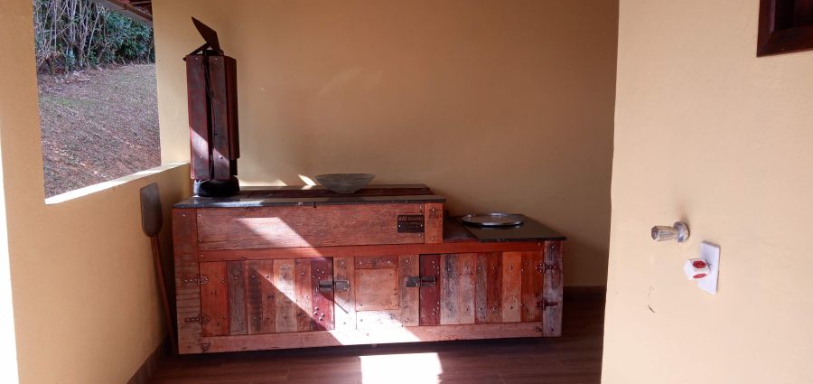 Espaço gourmet com churrasqueira e fogão a lenha